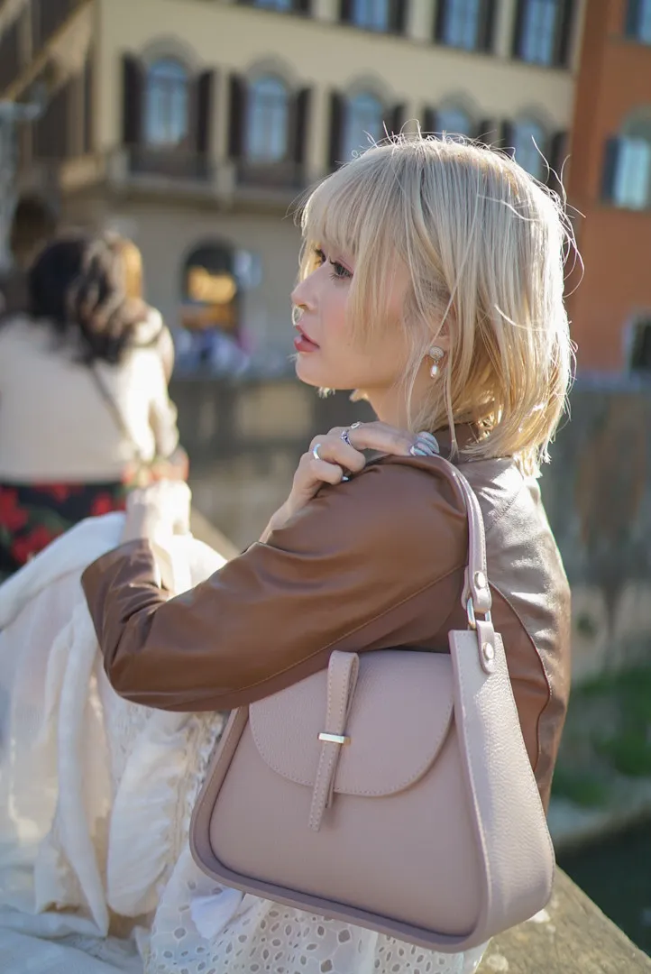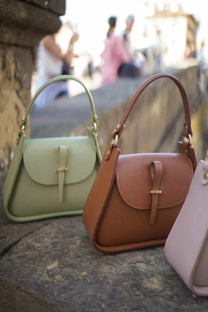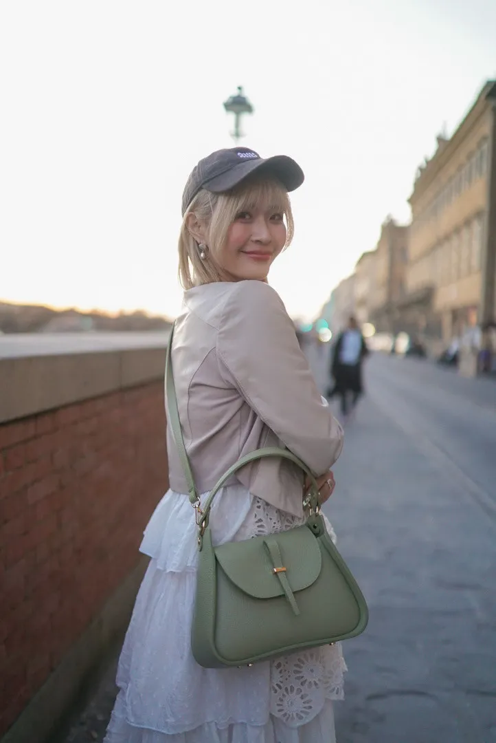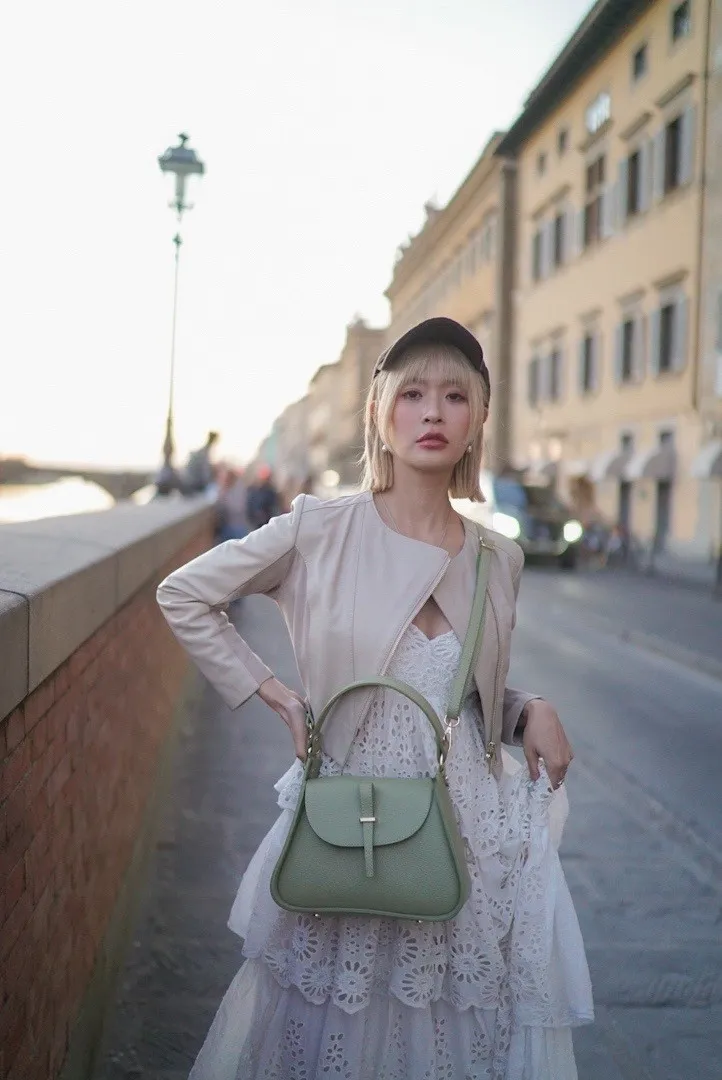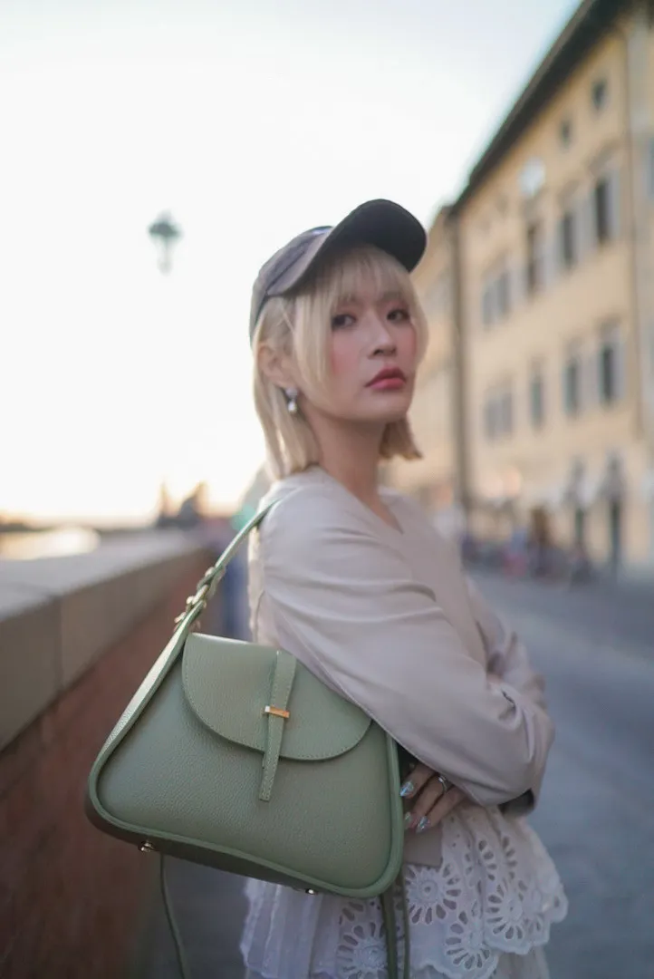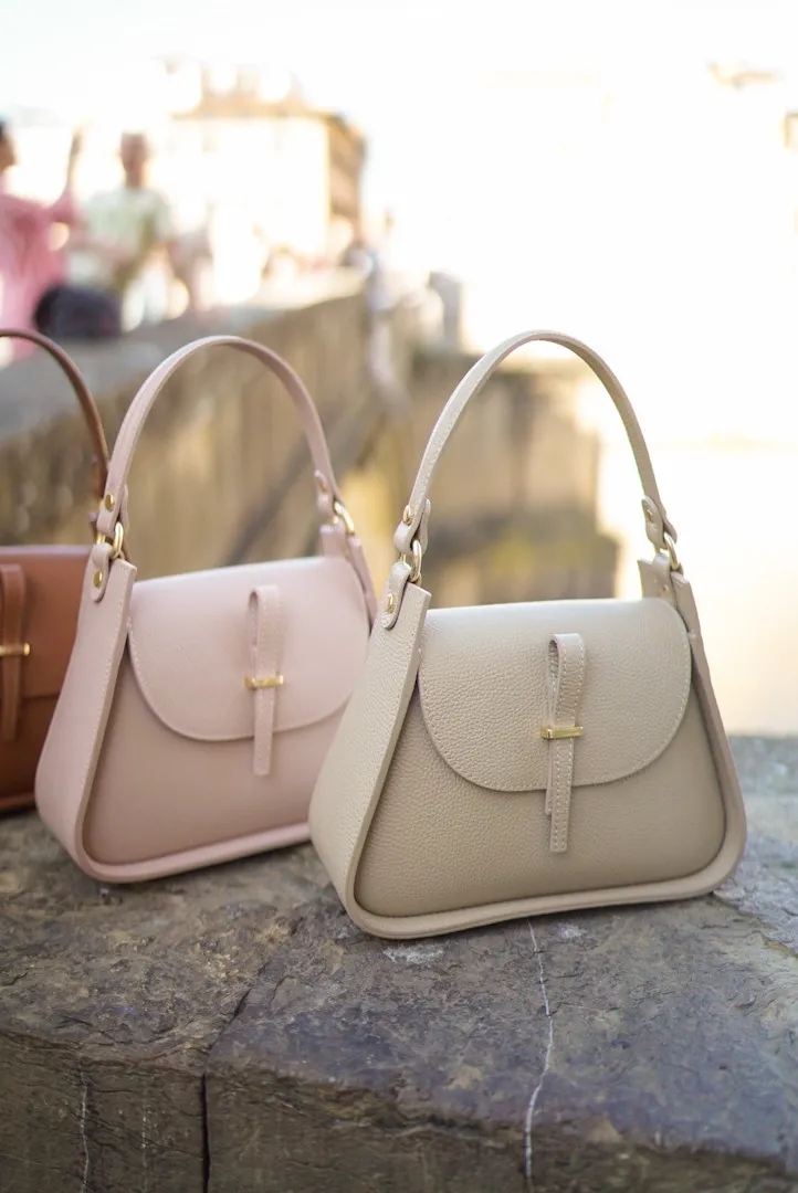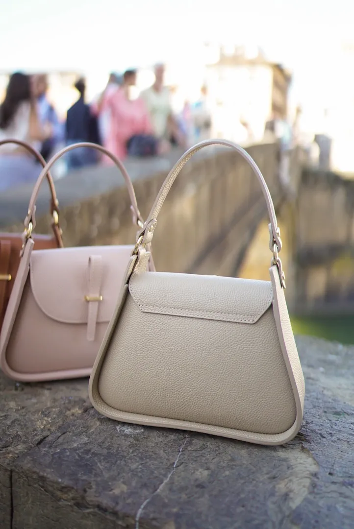 義大利製真皮提把翻蓋梯形包