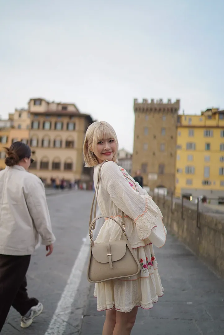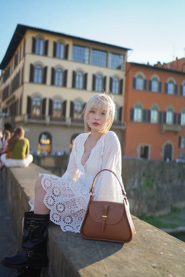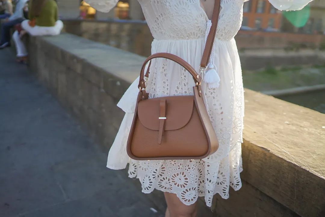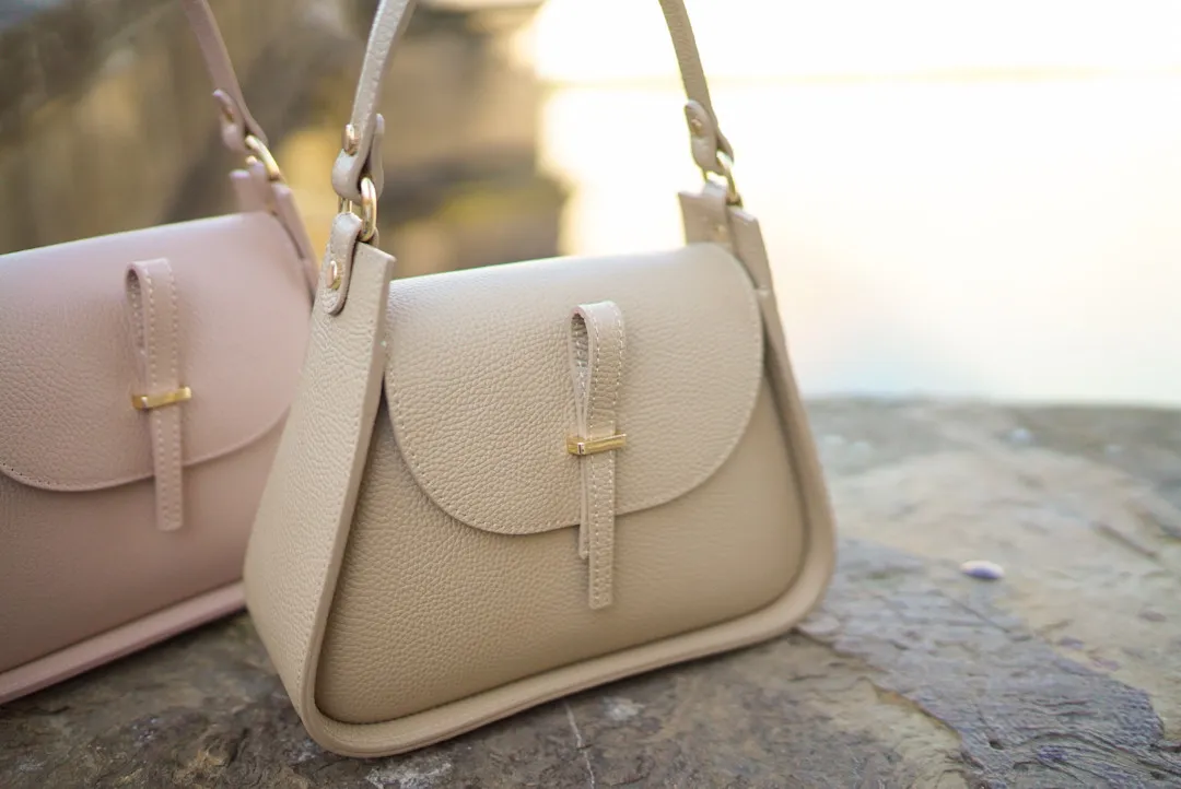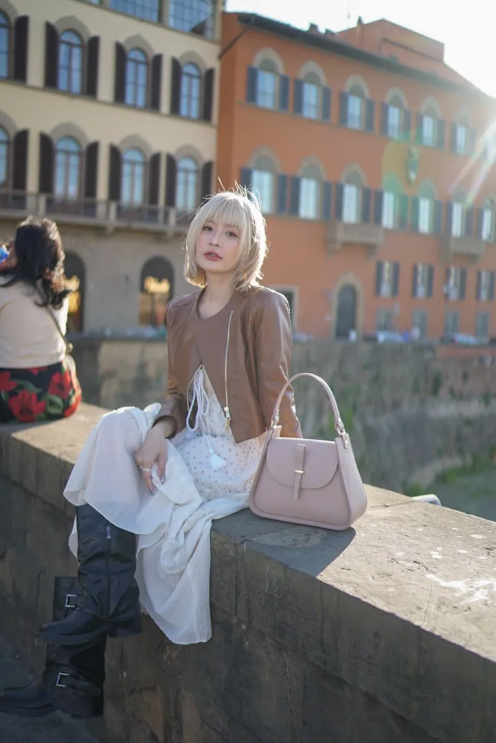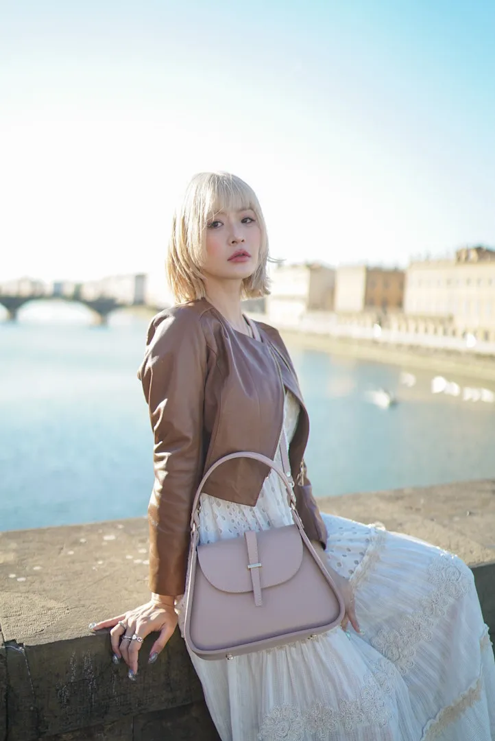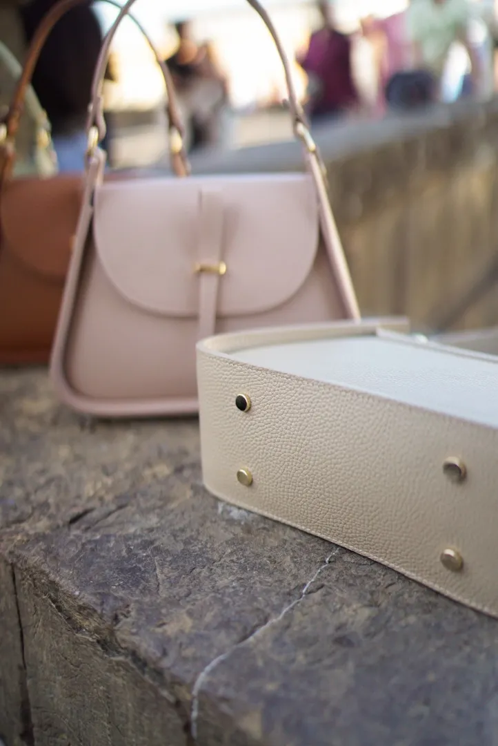 義大利製真皮提把翻蓋梯形包