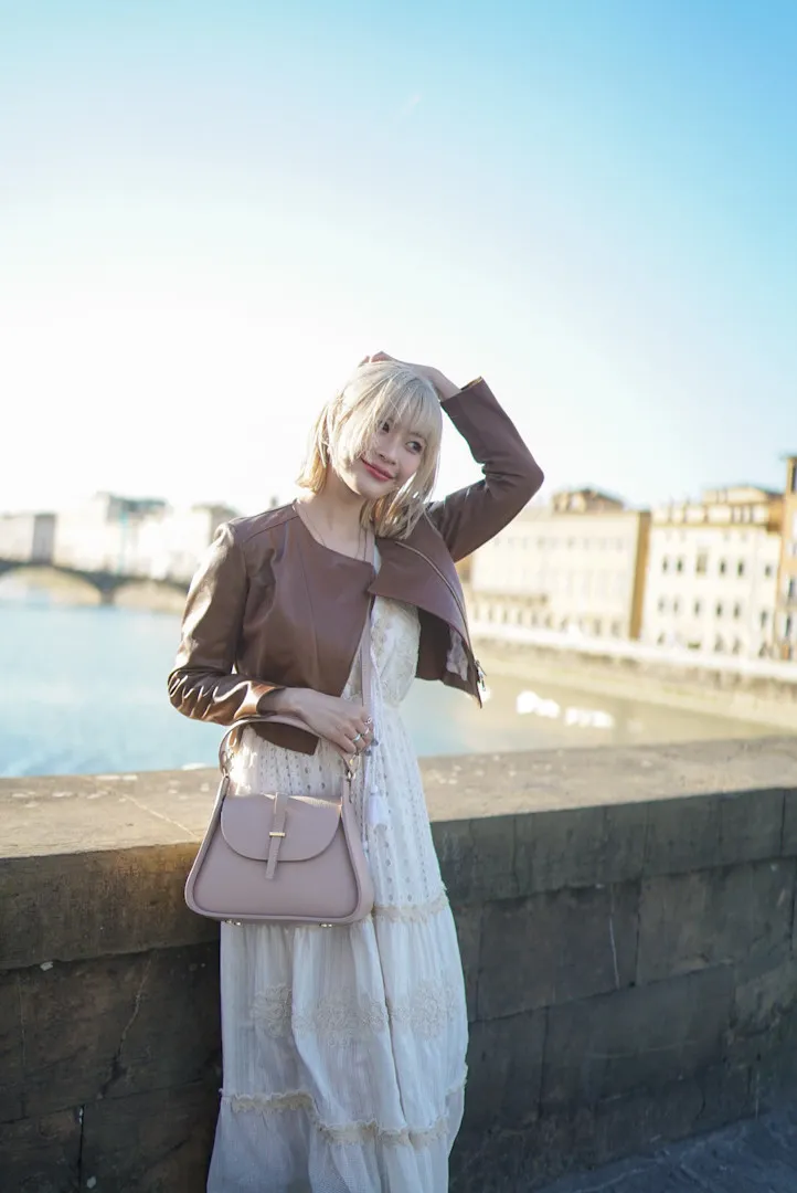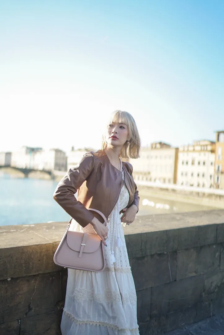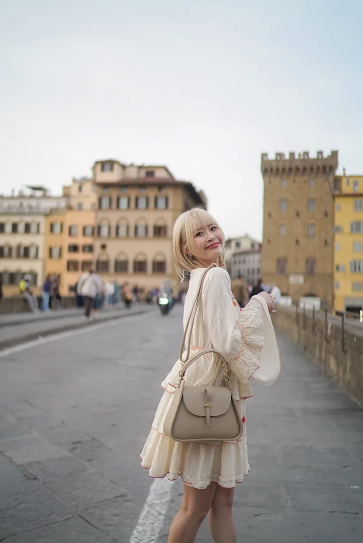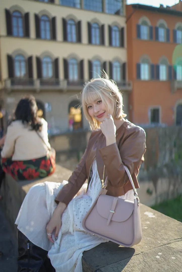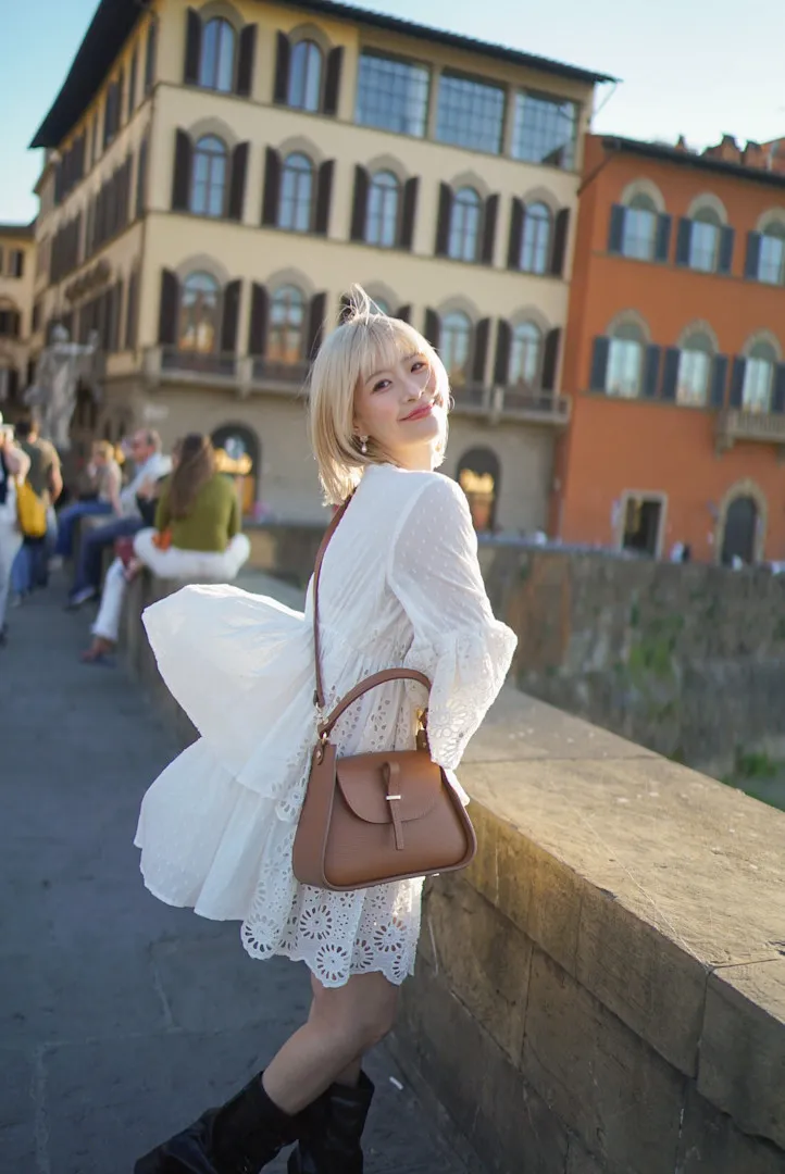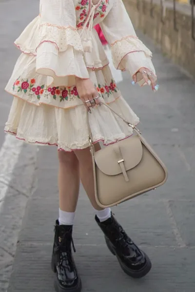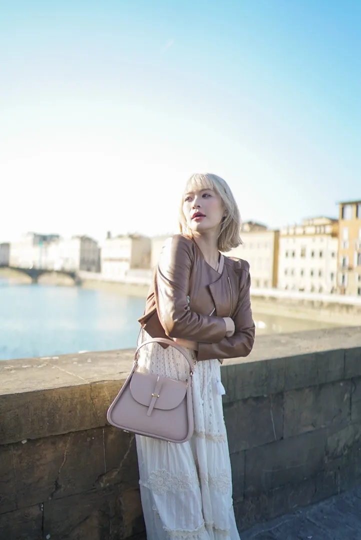 義大利製真皮提把翻蓋梯形包