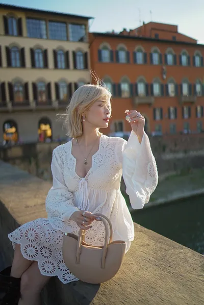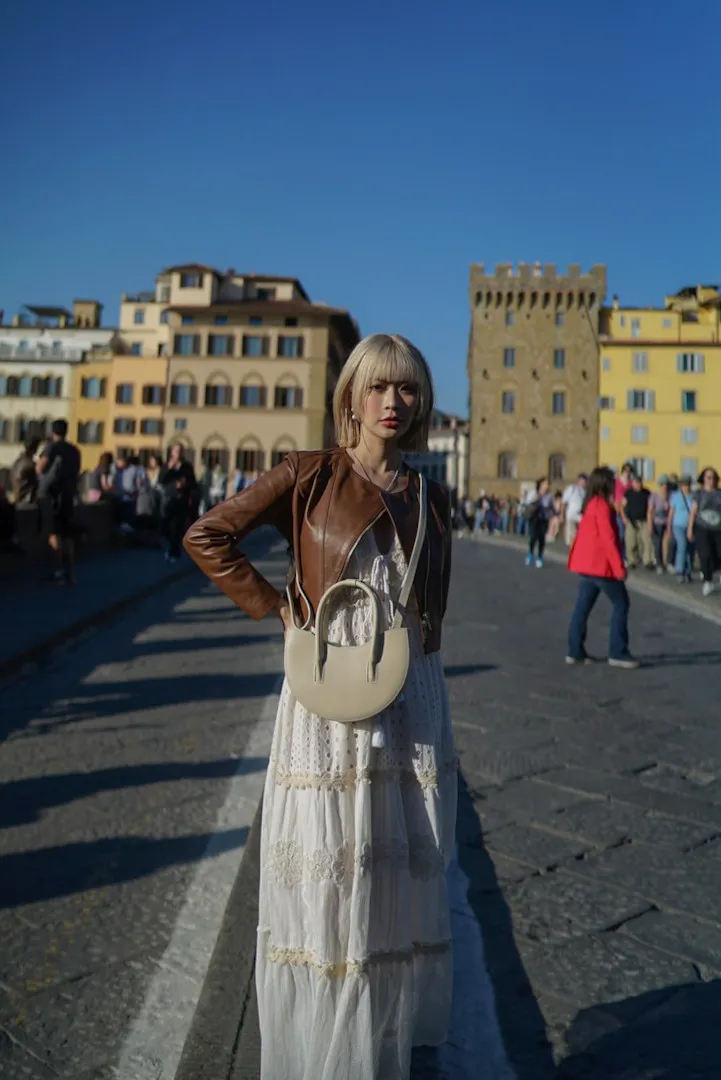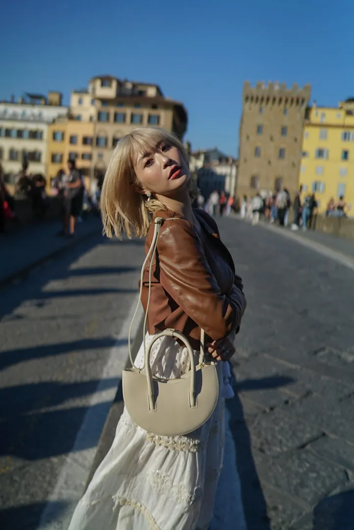 義大利製真皮手提半圓包
