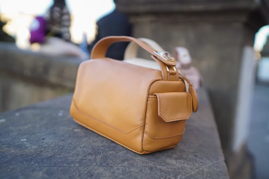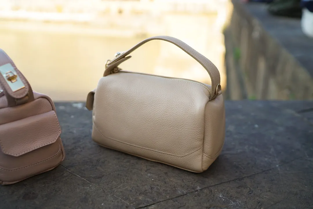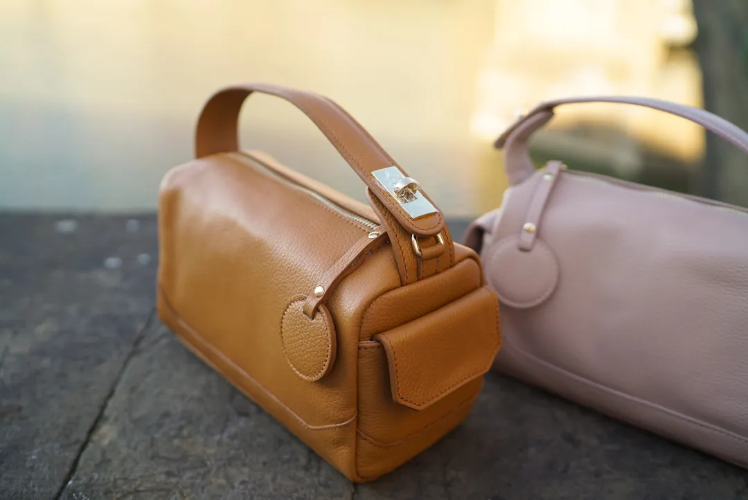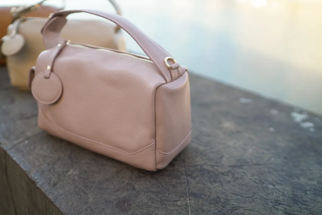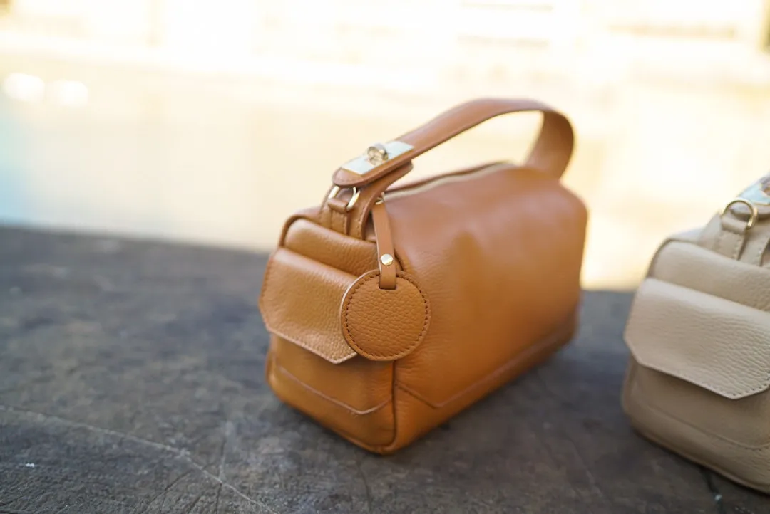 P15義大利製真皮提帶轉扣吊飾方桶包 2680元