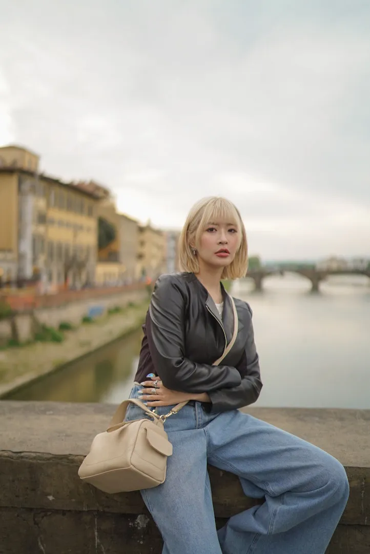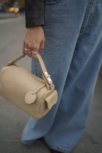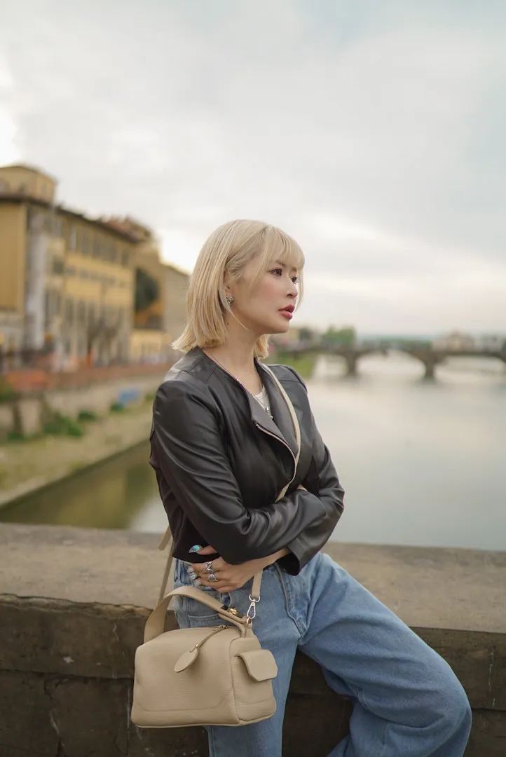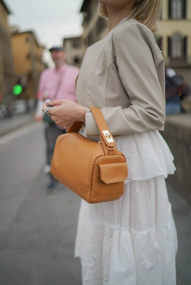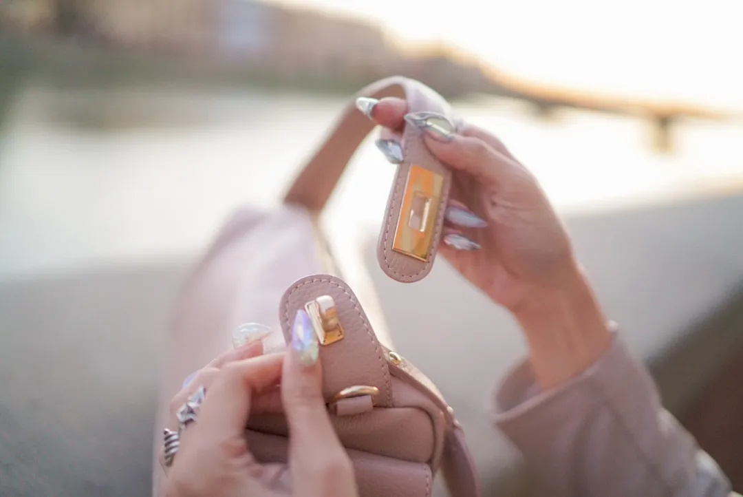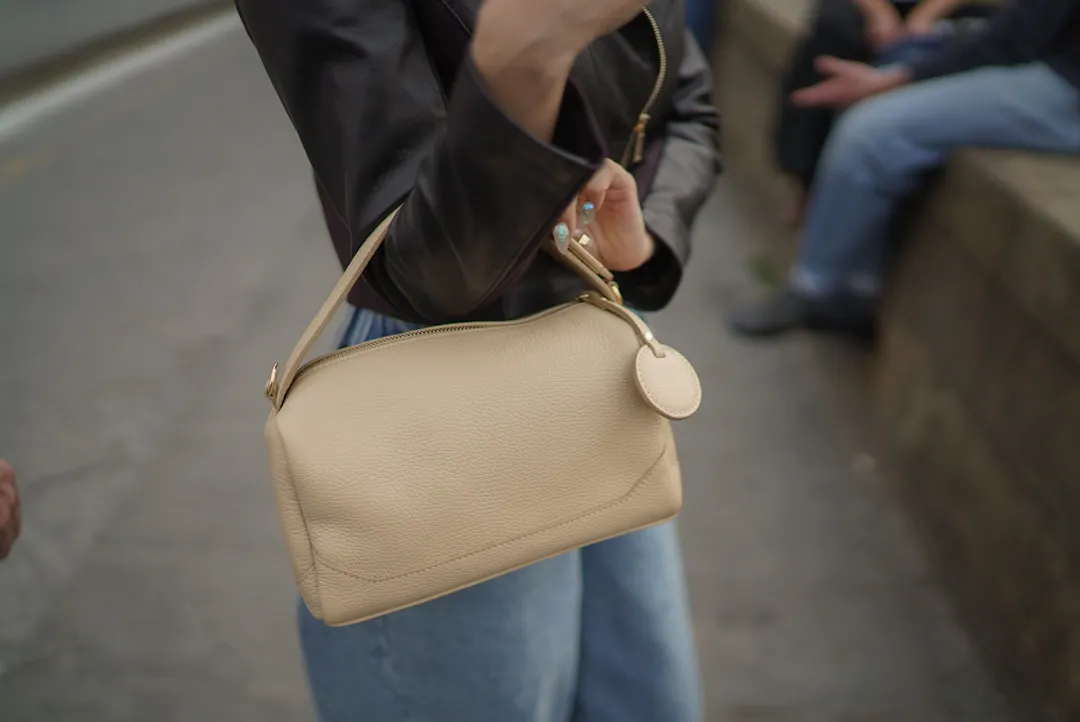 P15義大利製真皮提帶轉扣吊飾方桶包 2680元