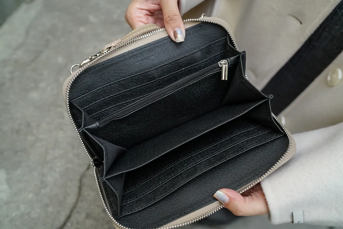 8個卡夾&2個內層,三個鈔票分層,1個拉鍊零錢袋