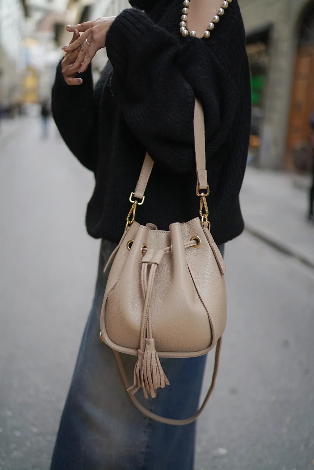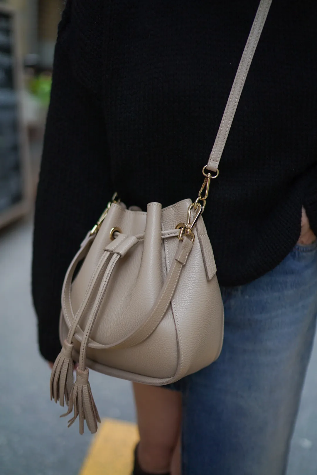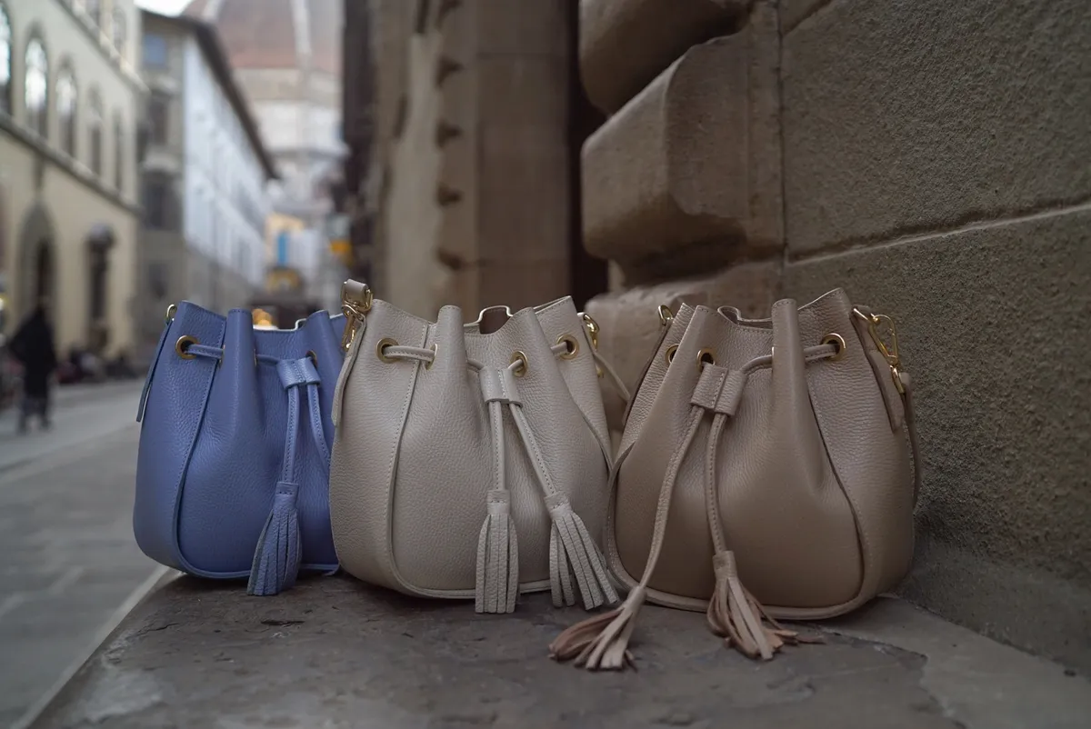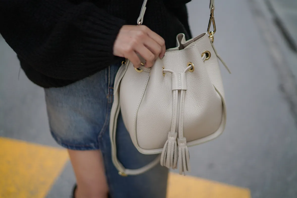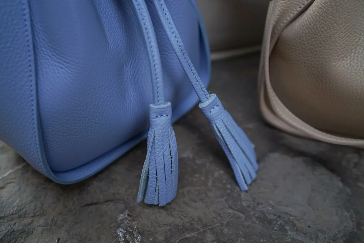 義大利連線真皮流蘇水桶包