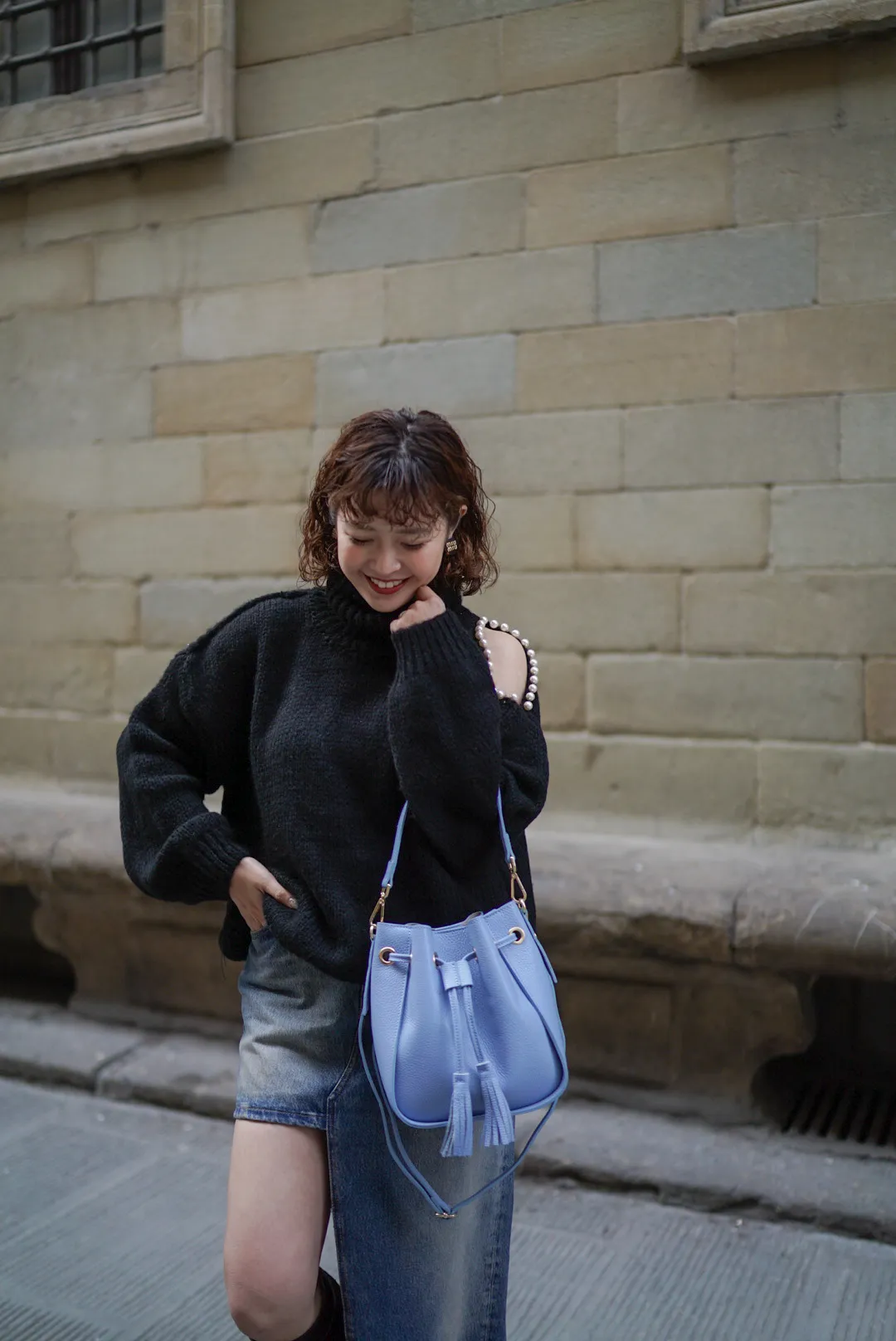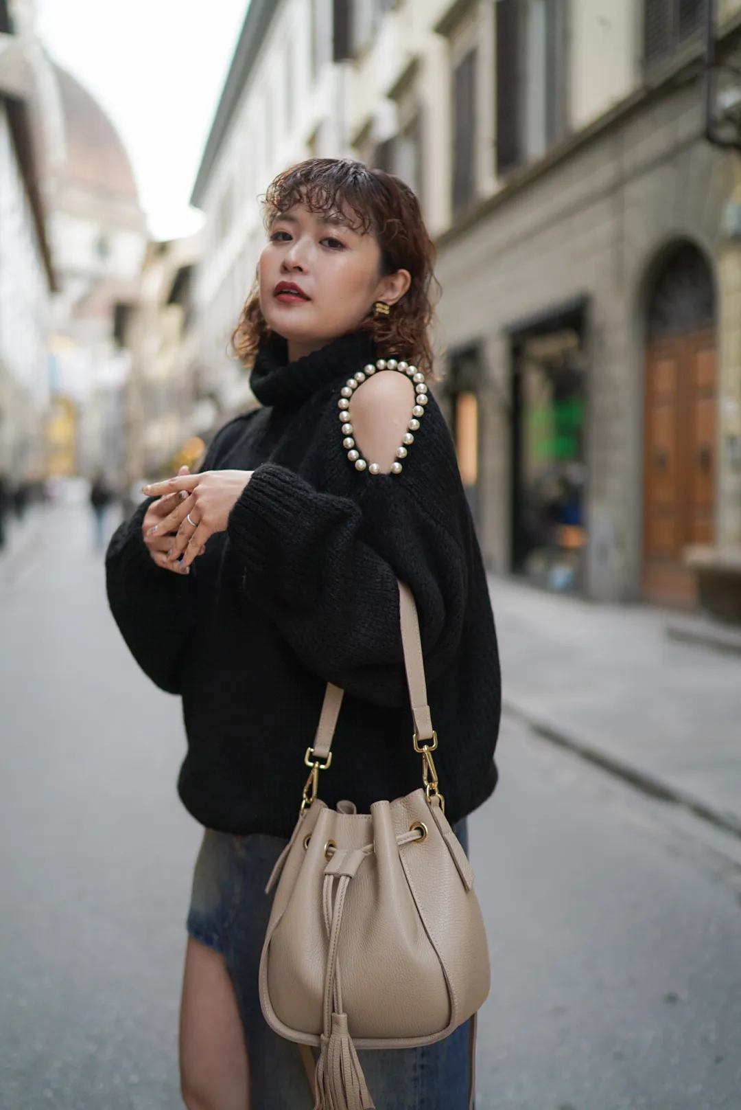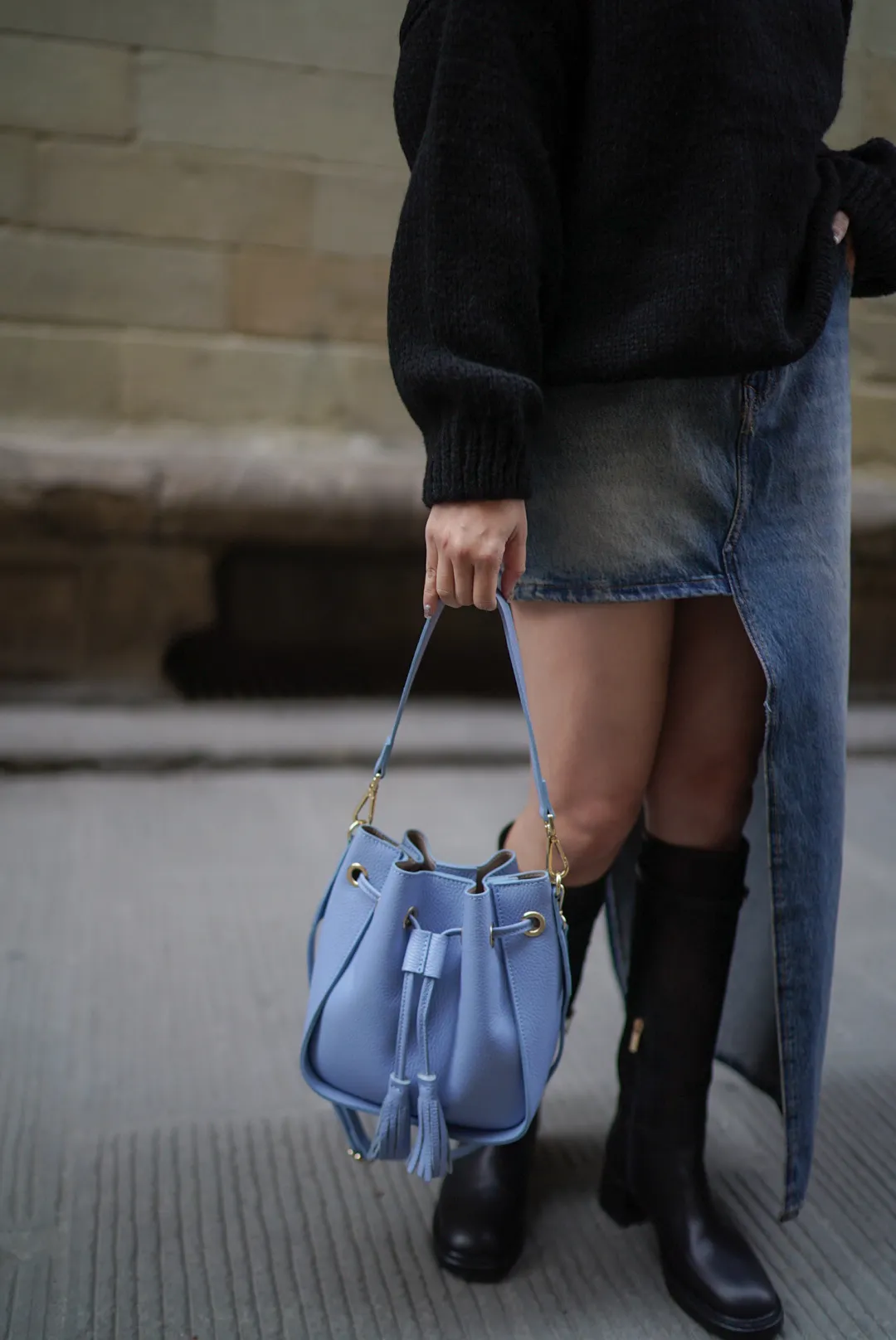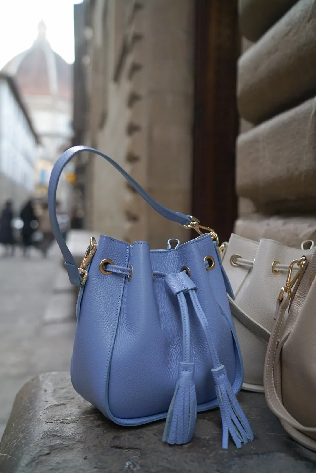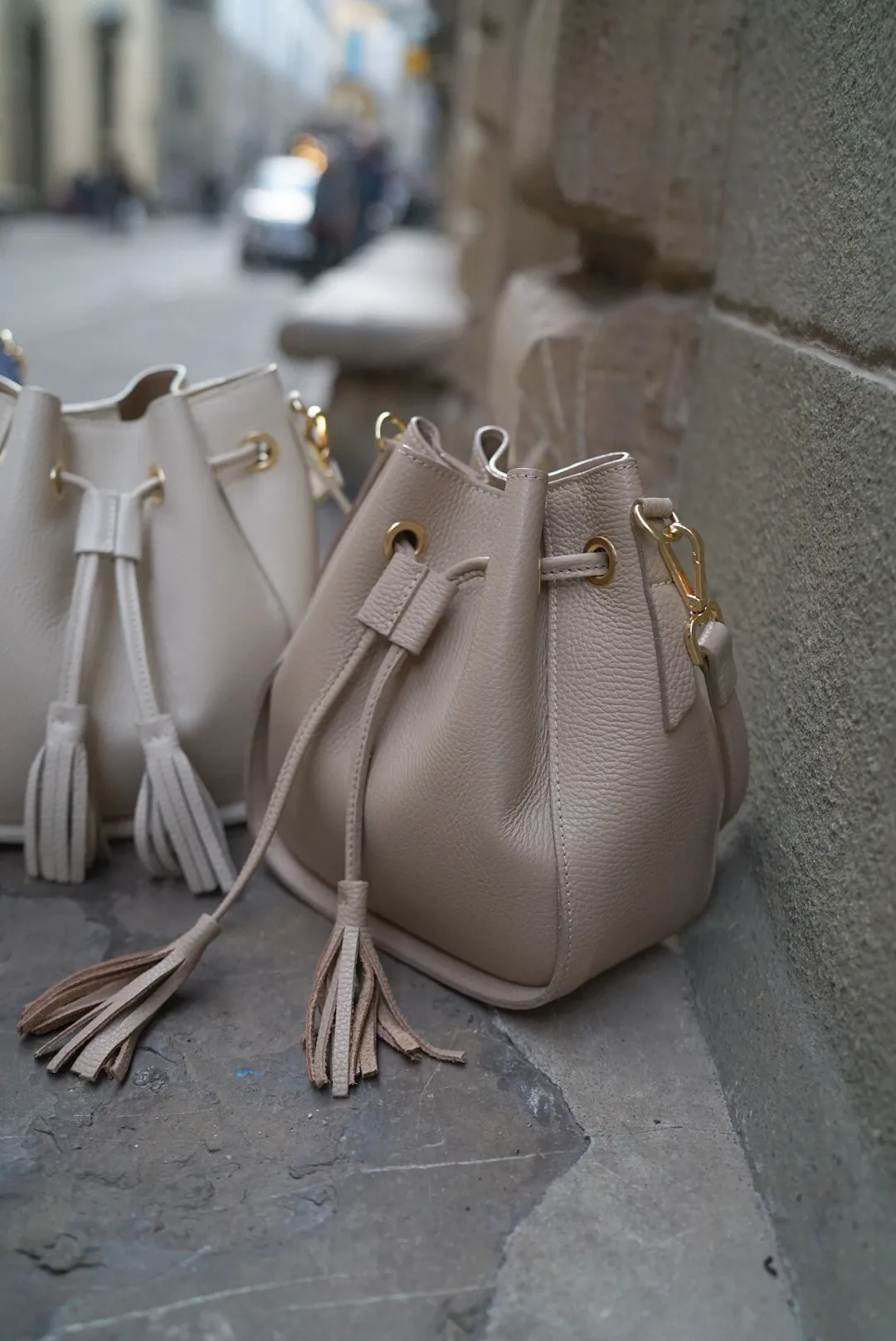 義大利連線真皮流蘇水桶包