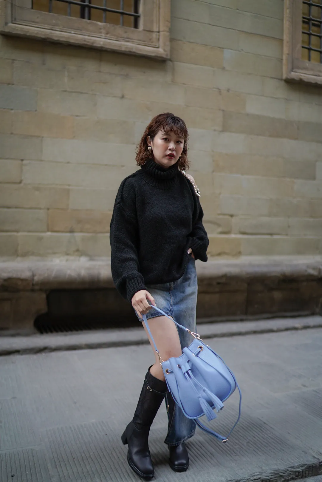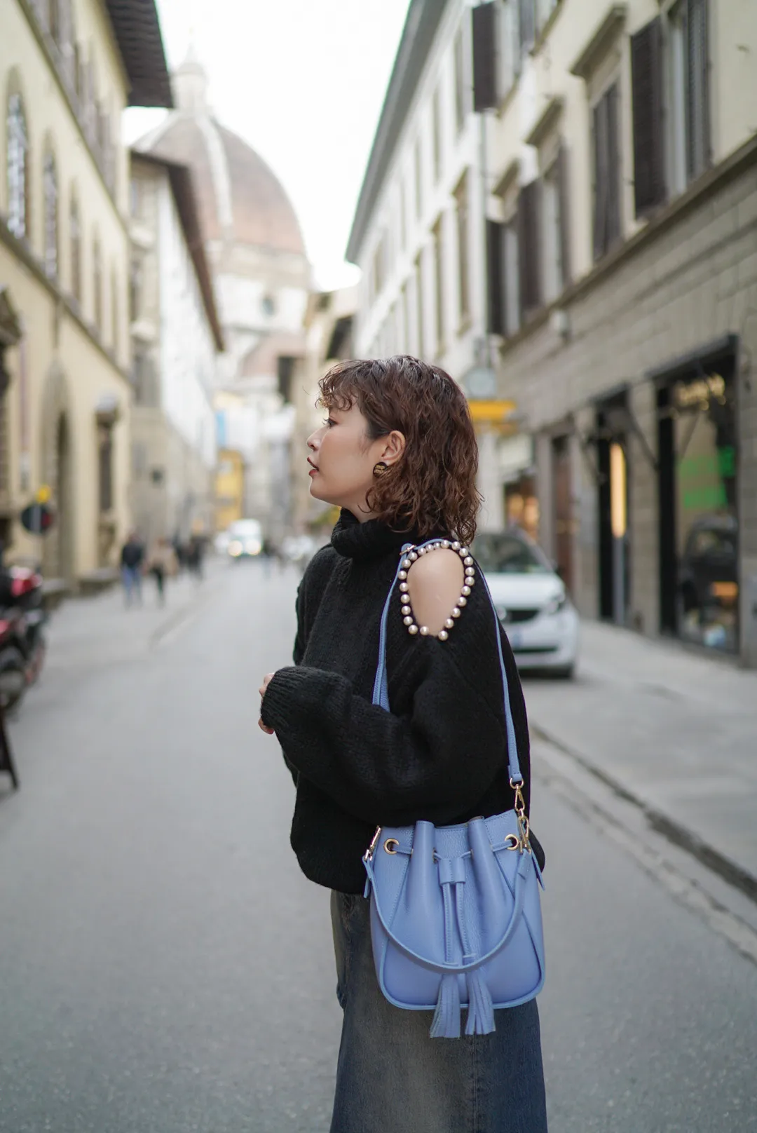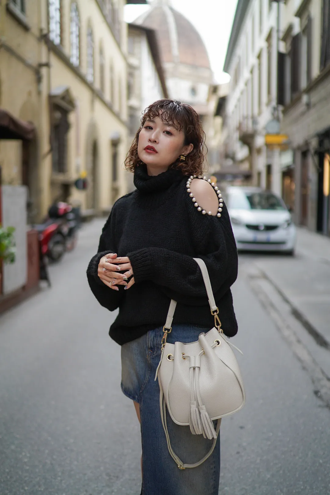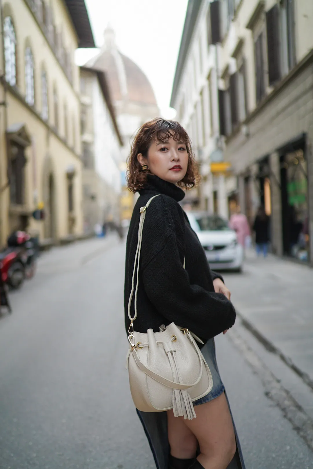 義大利連線真皮流蘇水桶包