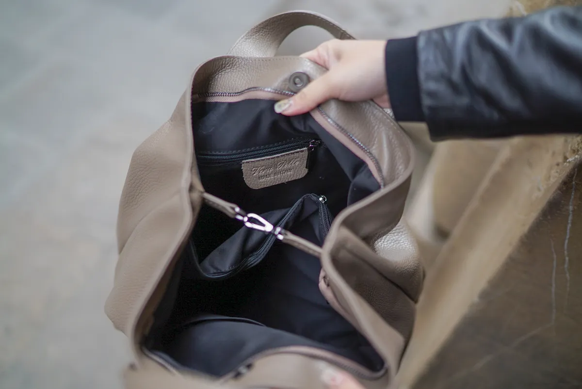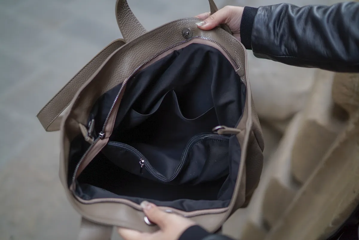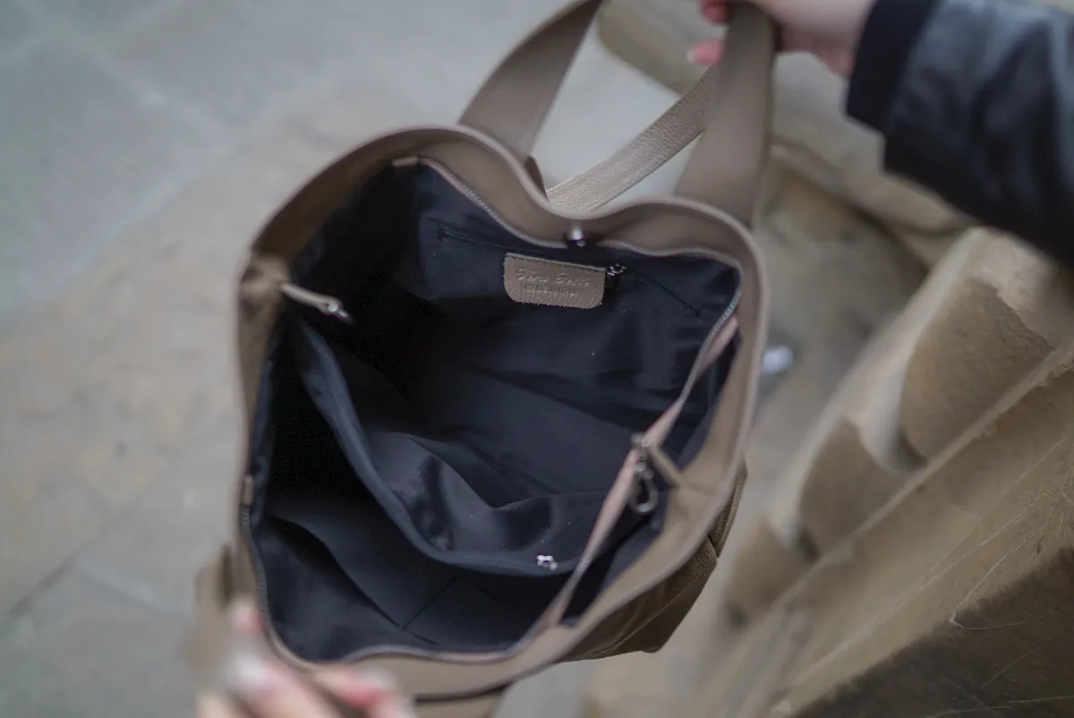 內裡ㄧ個拉鍊式暗袋、一個拉鍊袋