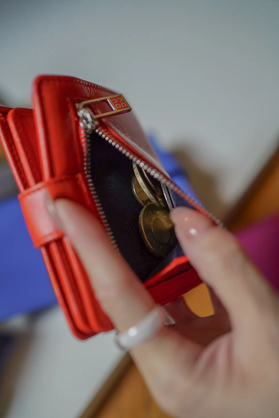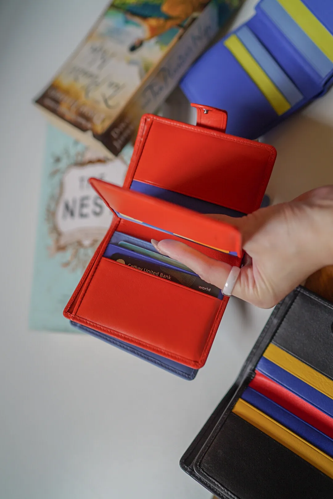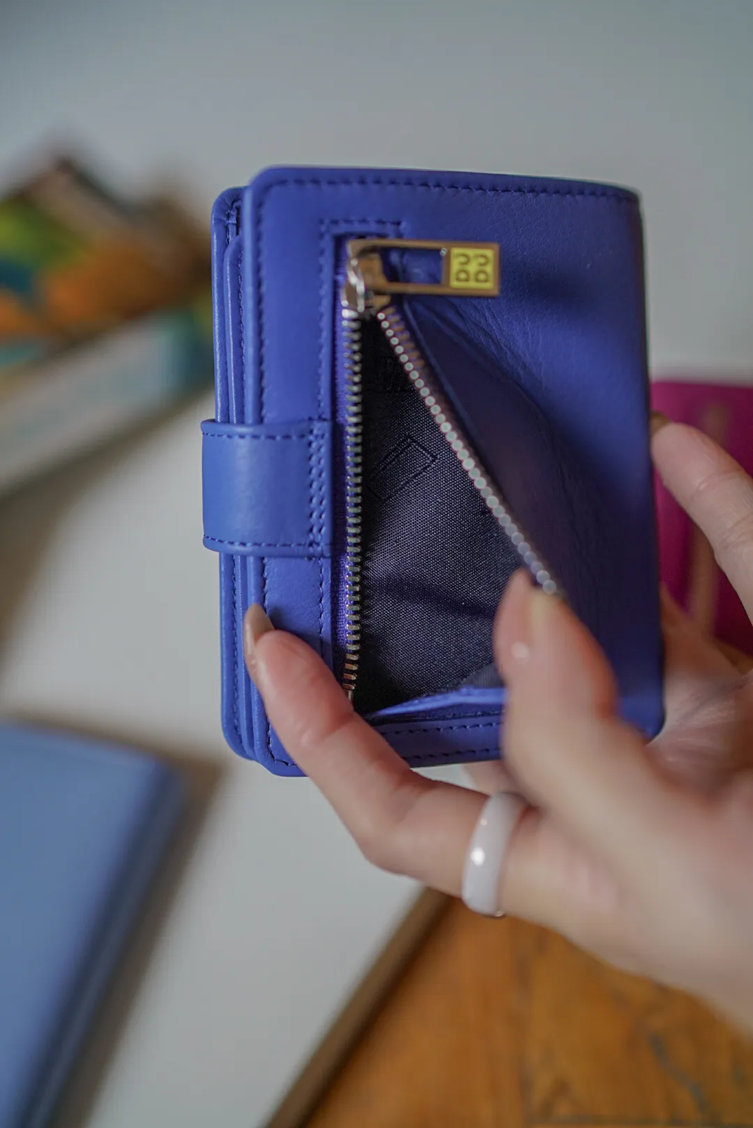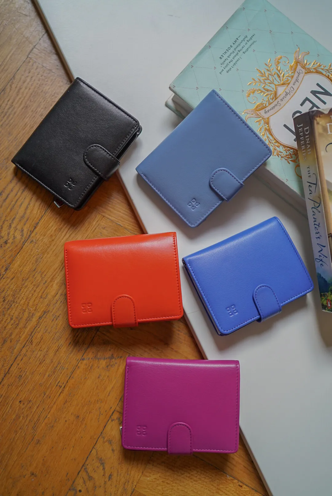 T127威尼斯品牌小牛皮翻蓋短夾 2280元 桃紫,橘,淺藍,黑,寶藍 尺寸(合上):8.5 x 11 x 1.3 cm 重量:130公克 組成:1 個帶拉鍊的外部口袋、8 個信用卡口袋、1 個鈔票口袋和 5 個額外口袋