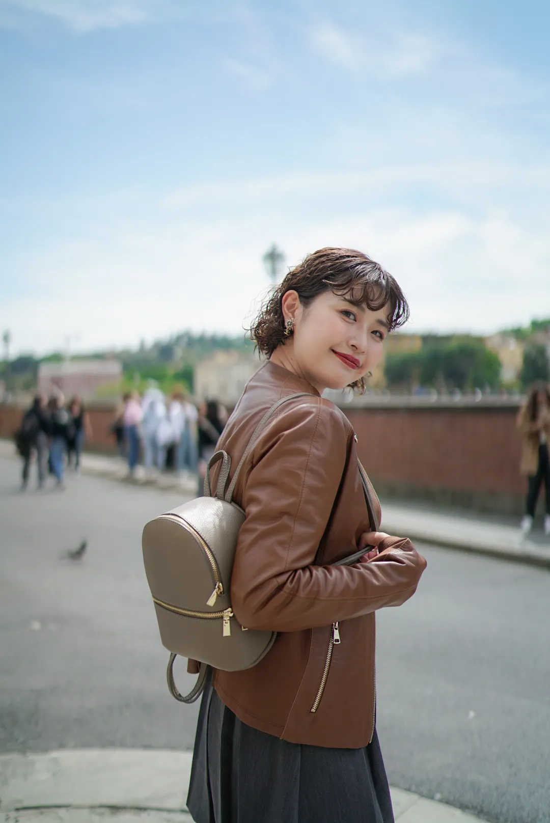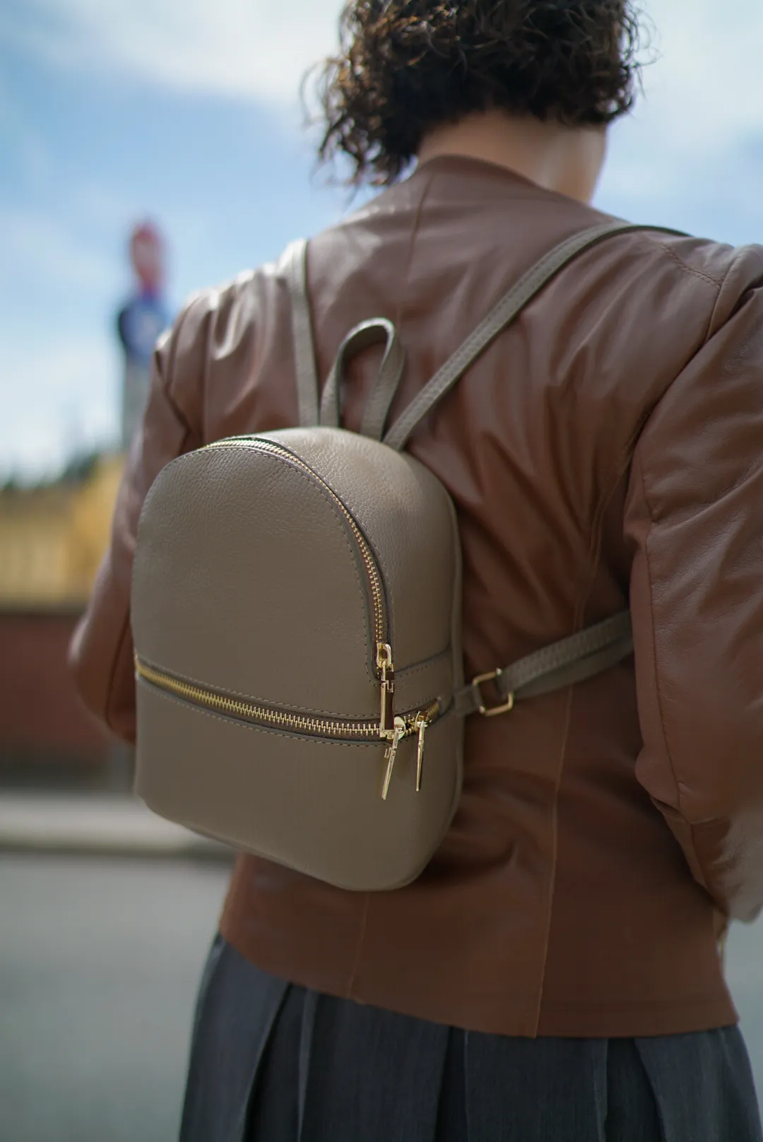 義大利真皮拉鍊小後背包