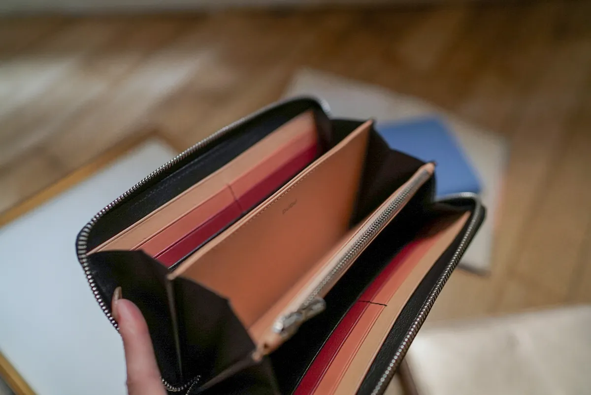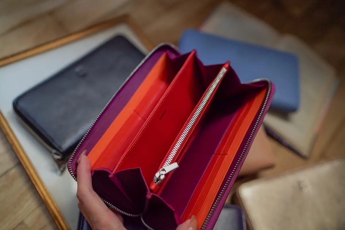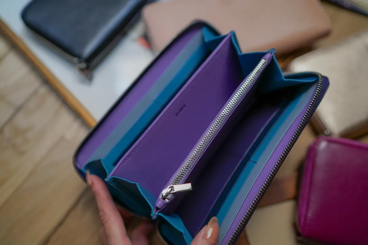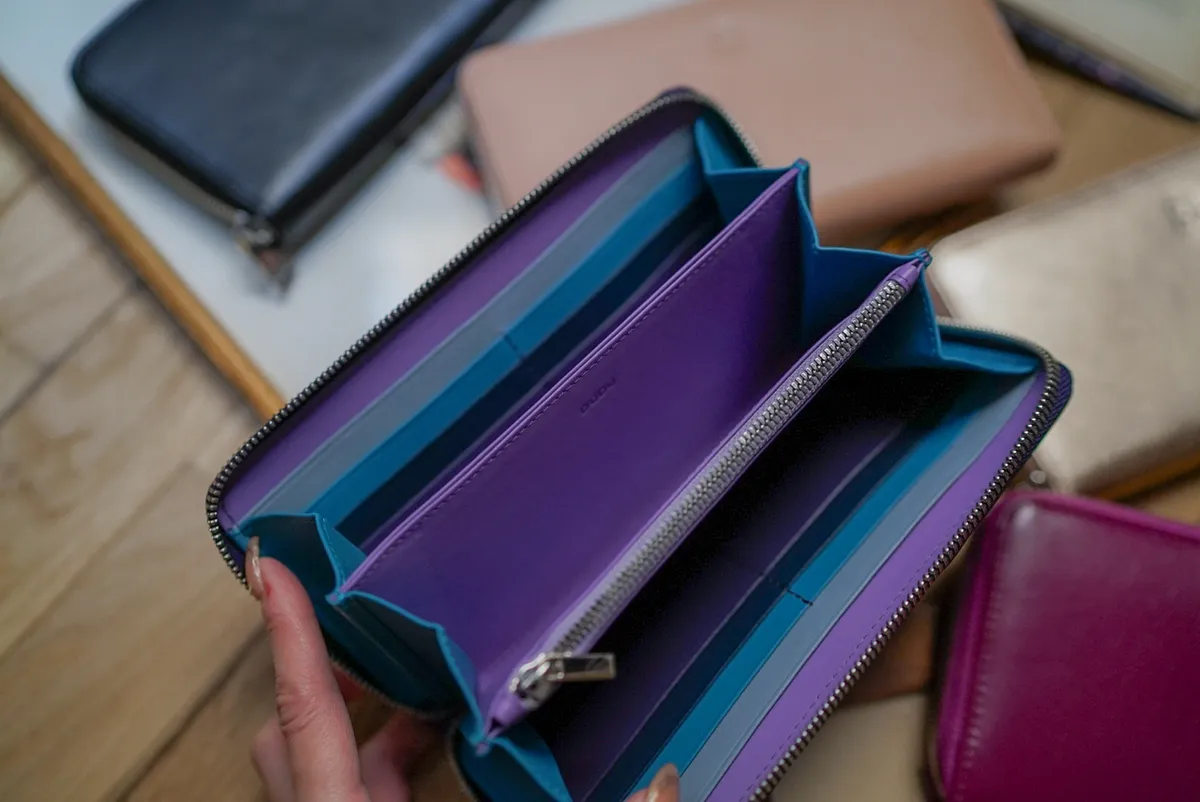 T182威尼斯品牌拉鍊長夾 黑 淺藍 乾燥玫瑰 紫 玫瑰金 桃粉 葡萄紫(新色) 材質:小牛皮 尺寸(閉合):19 x 11 x 2.5 cm 重量:180公克 組成:12 個信用卡口袋、1 個帶拉鍊的零錢包和 3 個分層
