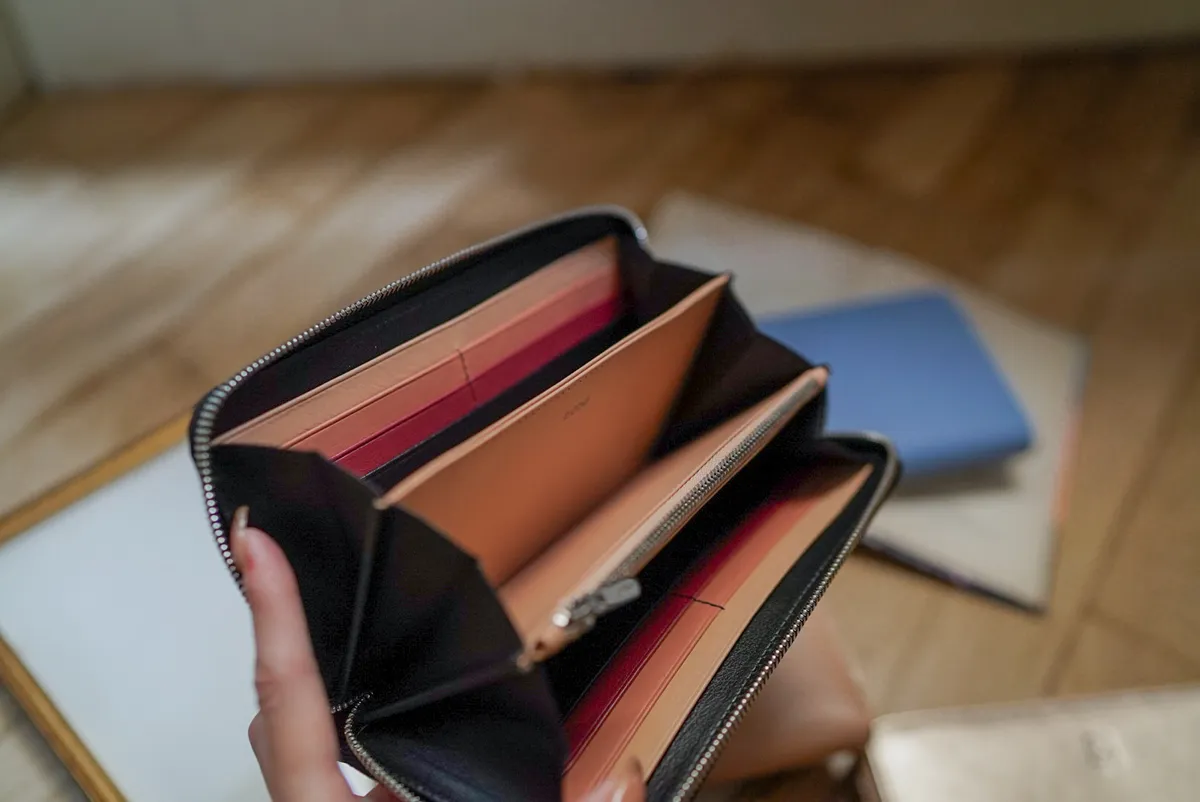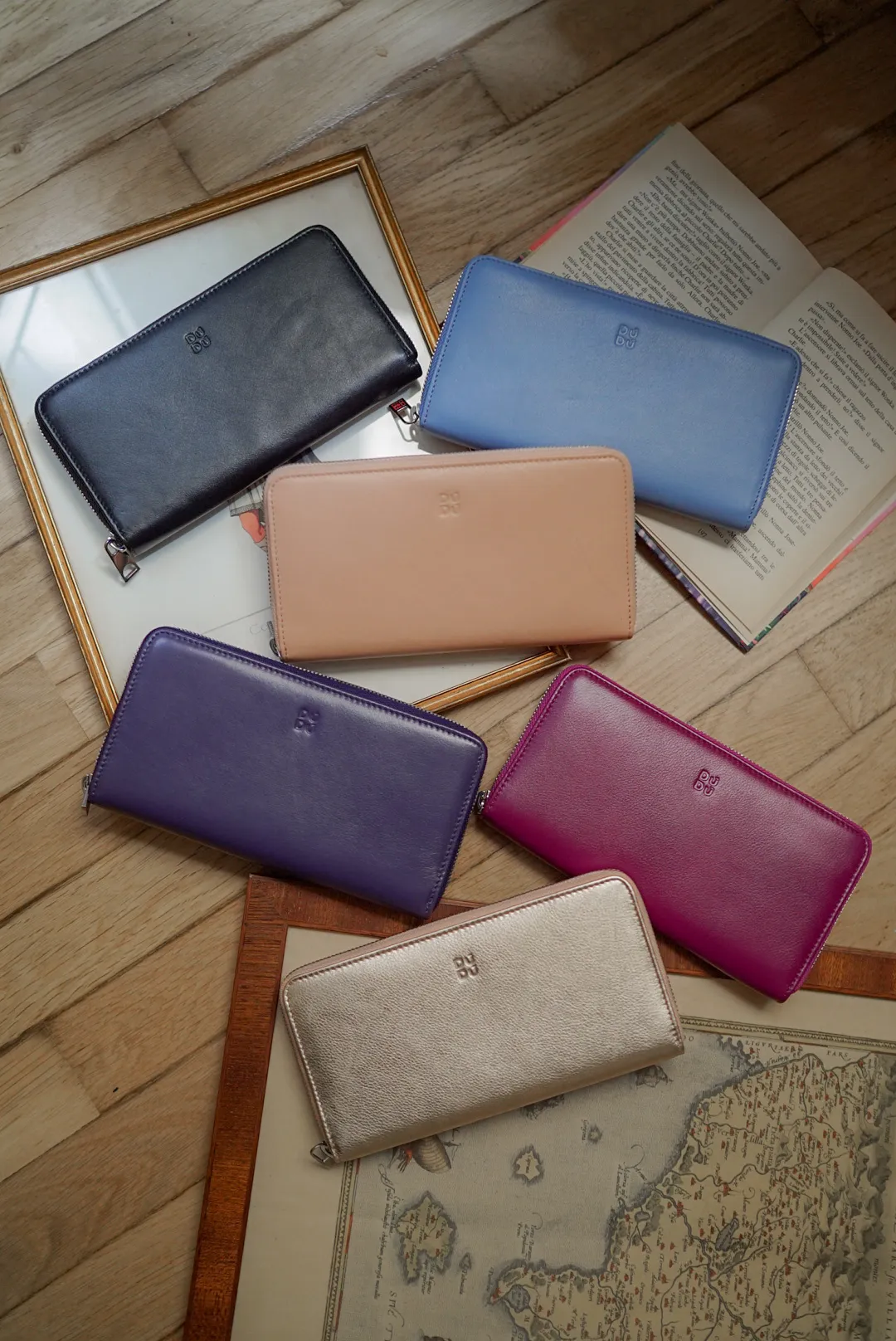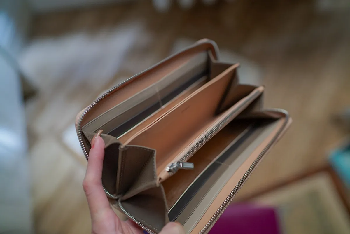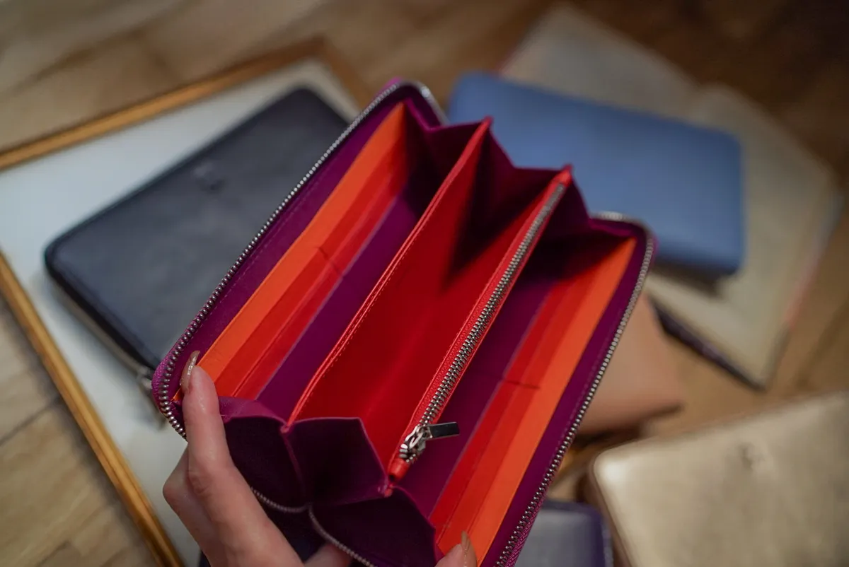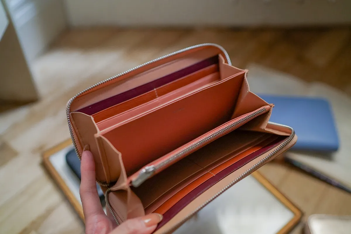 T182威尼斯品牌拉鍊長夾 黑 淺藍 乾燥玫瑰 紫 玫瑰金 桃粉 葡萄紫(新色) 材質:小牛皮 尺寸(閉合):19 x 11 x 2.5 cm 重量:180公克 組成:12 個信用卡口袋、1 個帶拉鍊的零錢包和 3 個分層