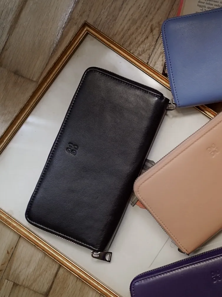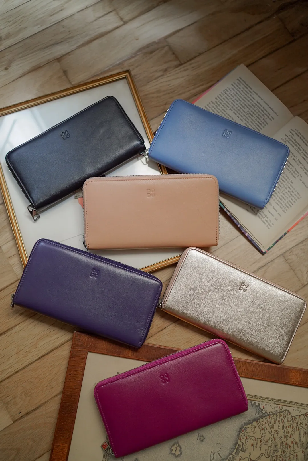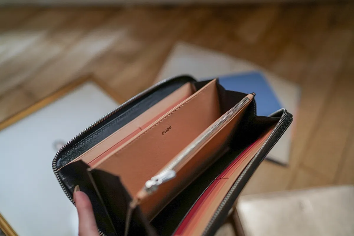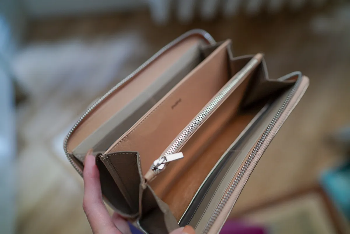 T182威尼斯品牌拉鍊長夾 黑 淺藍 乾燥玫瑰 紫 玫瑰金 桃粉 葡萄紫(新色) 材質:小牛皮 尺寸(閉合):19 x 11 x 2.5 cm 重量:180公克 組成:12 個信用卡口袋、1 個帶拉鍊的零錢包和 3 個分層