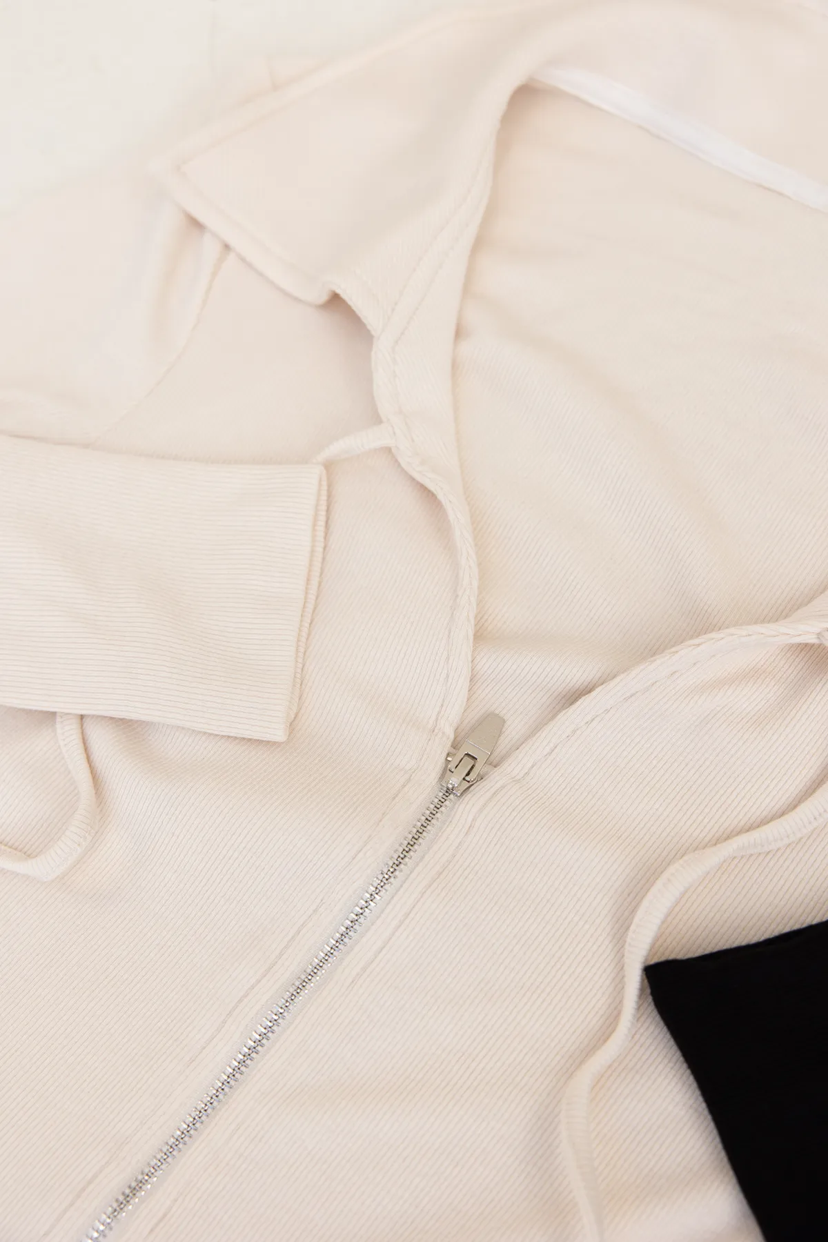 🔸黑/米白🔸S/M/L#腰部修身#連袖指扣✨超彈強力布料#顯瘦腰身✔ 跑步健身運動適穿✔ 夏季戶外防曬,冬季室內防寒✔ 翻領設計修飾頸部線條✔ 超彈強力布料,可自由自在的伸展,無拘無束✔ 柔軟親膚透氣面料˙95%COTTON 5%ELASTANE.