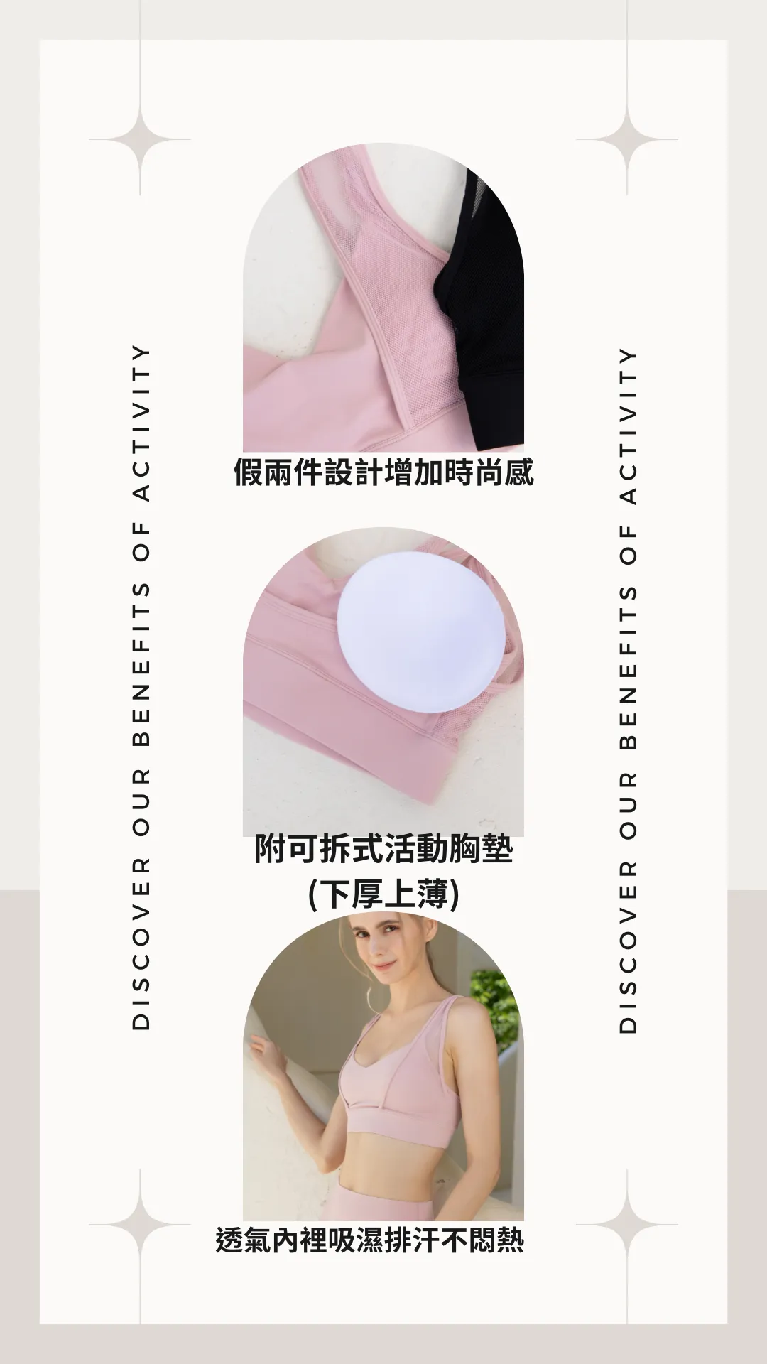 限量現貨🔸黑/粉/米🔸S/M/L/XL🔸附可拆式活動胸墊(下厚上薄)#網紗透氣設計#穩定胸型不晃動✨裸感體驗✨時尚設計感✔ 具有緊緻的伸縮彈性與延展包覆力✔ 假兩件設計,增加時尚感✔ 不因汗水變色的優越吸汗速乾功能✔ 前胸立體U版型打造立體胸型✔ 紗網透氣內裡吸濕排汗不悶熱✔ 高緊緻彈力面料運動穩定˙75%NYLON 25%ELASTANE.