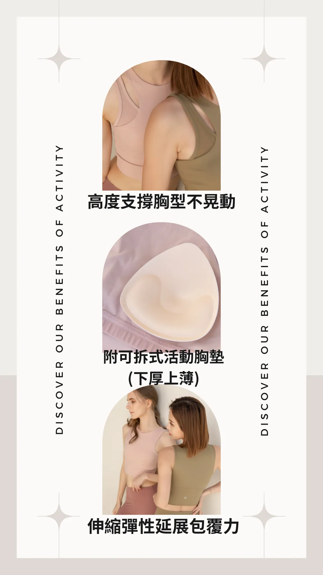 🔸玫瑰/淺粉/油果綠🔸S/M/L/XL🔸附可拆式活動胸墊(下厚上薄)#高彈性機能面料#穩定胸型不晃動✨裸感體驗✨高度支撐✨輕柔包覆✔ 具有緊緻的伸縮彈性與延展包覆力✔ 加寬下擺舒適不緊勒✔ 不因汗水變色的優越吸汗速乾功能✔ 寬版彈力肩帶減壓舒適✔ 集中胸型收腰剪裁˙75%NYLON 25%ELASTANE.